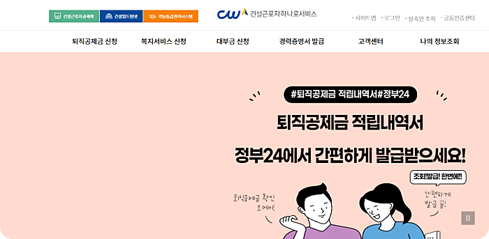 1. 건설근로자퇴직공제 종합서비스 사이트 접속