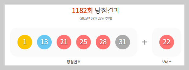 2025년 7월 26일, 제1182회 로또 추첨 결과가 공개되었어요.