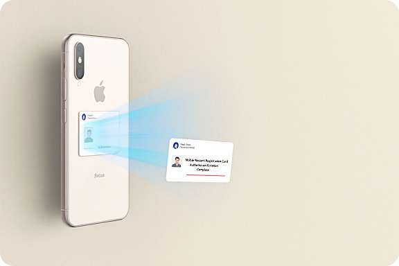 2. 스마트폰 등록 : 스마트폰 뒷면에 주민등록증을 접촉하면 앱에서 즉시 등록이 완료됩니다.