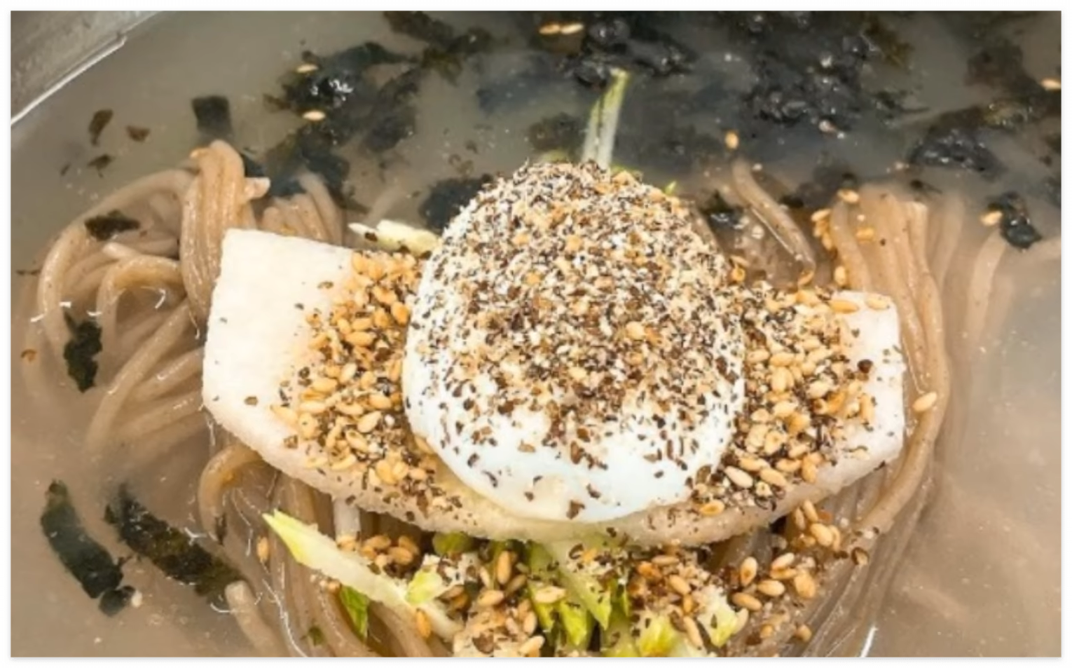 육수 또한 특별합니다. 멸치, 다시마, 무, 사과, 배 등 열세 가지 국산 재료만으로 우려낸 동치미 스타일의 육수는 조미료를 전혀 사용하지 않아도 깊은 감칠맛이 느껴지며 뒷맛이 깔끔합니다. 시중의 달달하거나 MSG 기반의 육수와는 차원이 다르다고 해도 과언이 아닙니다.