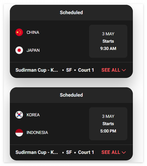 수디르만컵 4강 준결승 일정 안내